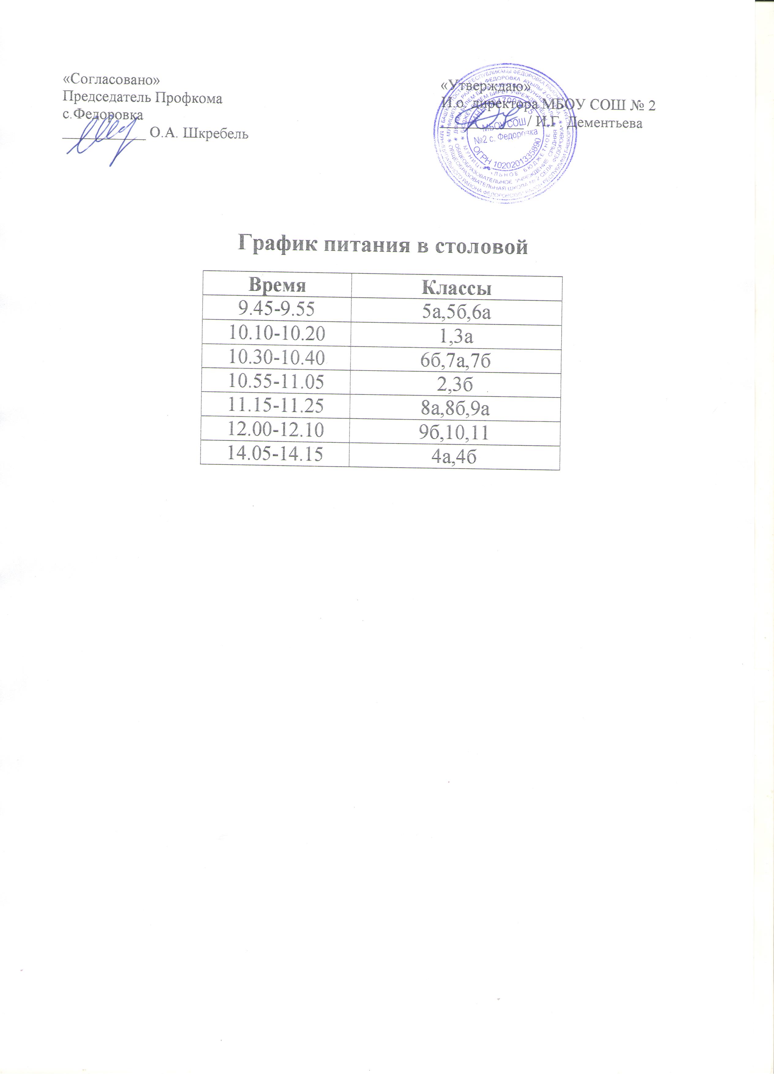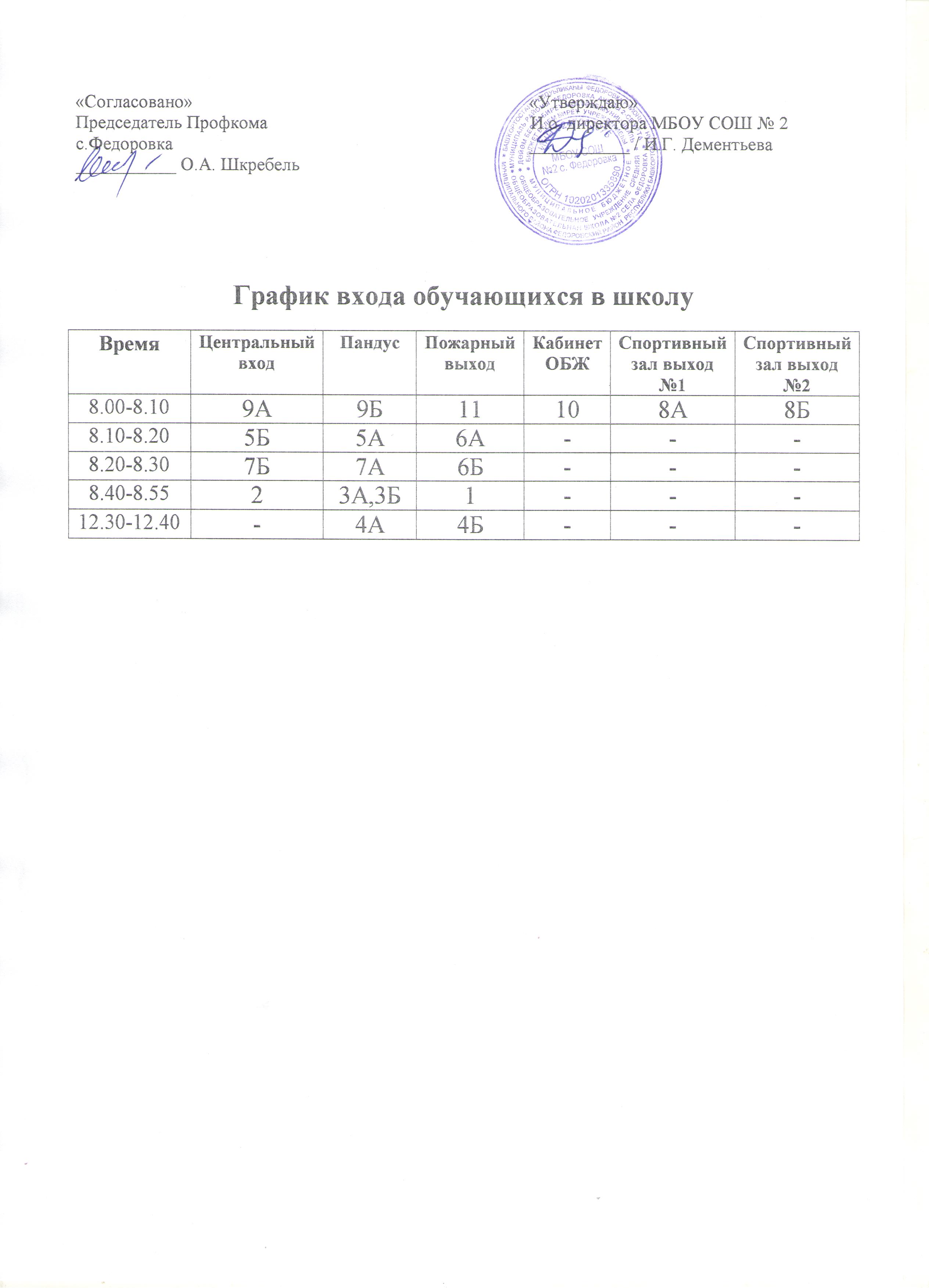 Расписание звонков